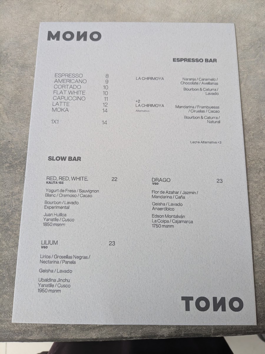 MONOTONO / Specialty Coffee Menu